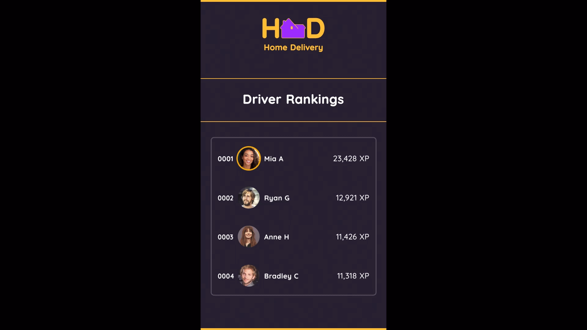 I was approached by a client to assist in creating some animated graphics for his short form series "Home Delivery". The story of the series involves delivery drivers competing to outdo one another on a leaderboard-style app named "Home Delivery".I was provided with many references of what the client envisioned for the imaginary app, and from there we worked to create the final animations for the series.